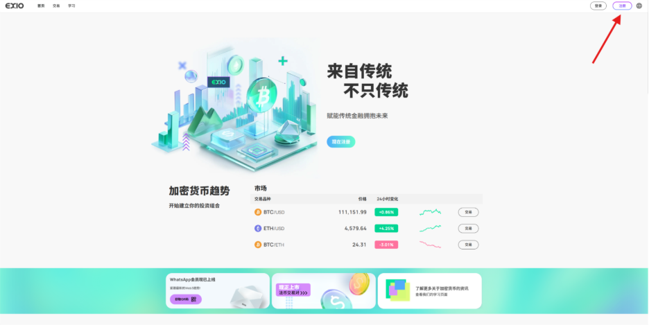 第一步是通过您的浏览器访问 EX.IO 官方網站,網址为 https://www.ex.io。