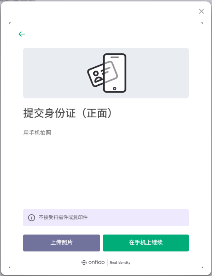 点击“继续使用手机”“上传照片”以提交身份证件 。