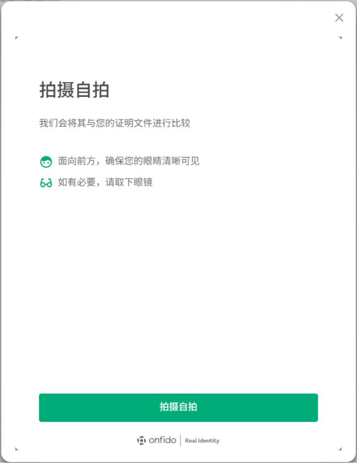 上传证件后,使用电脑或手机摄像头拍摄自拍照以确认您的身份。