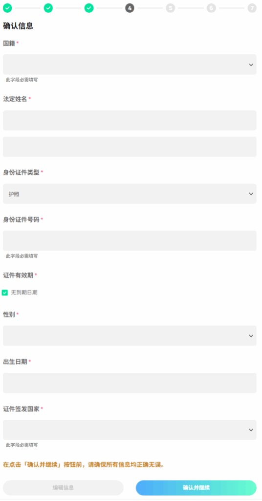 在「个人信息」部分准确填写您的个 人详细资料并提交。