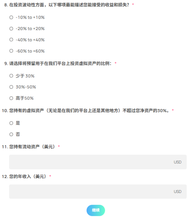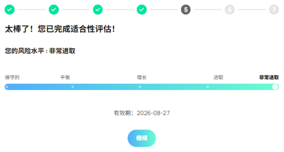 评估完成后,您的风险等级将显示。 点击「继续」。