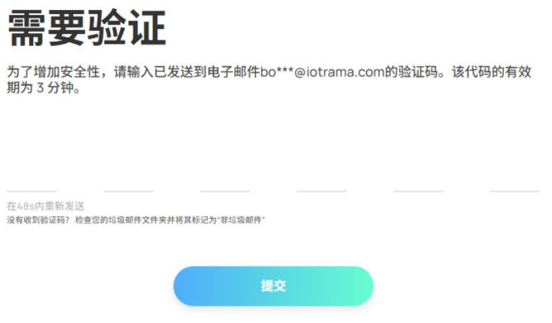登录帐户后,您需要输入从电子邮件收到的验证码,然后点击「提交」。