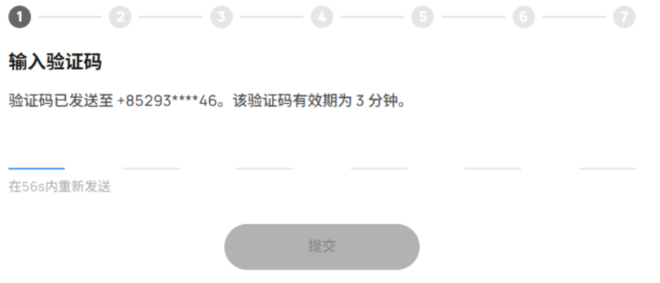 输入以短讯发送到您手机的验证码,然后按下「提交」。