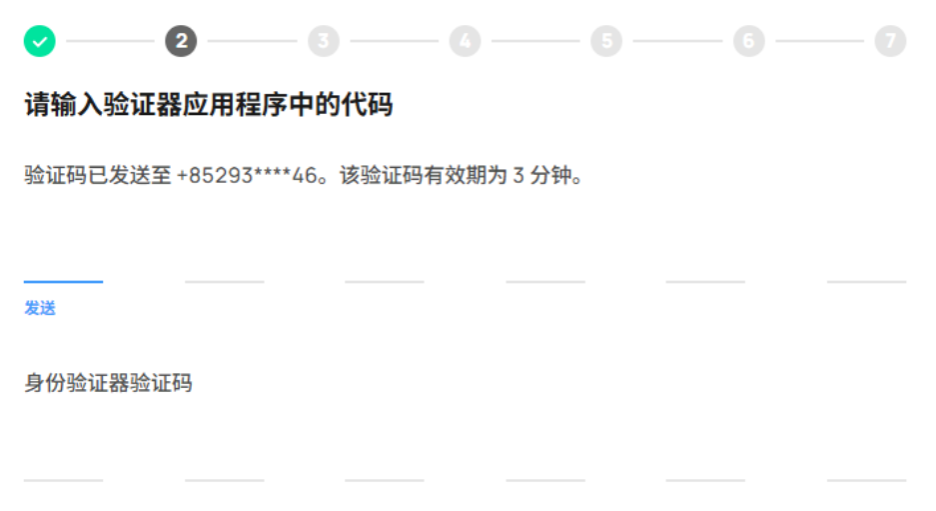 输入以短讯发送到您手机的验证码,以及验证器应用程序中的验证码。
