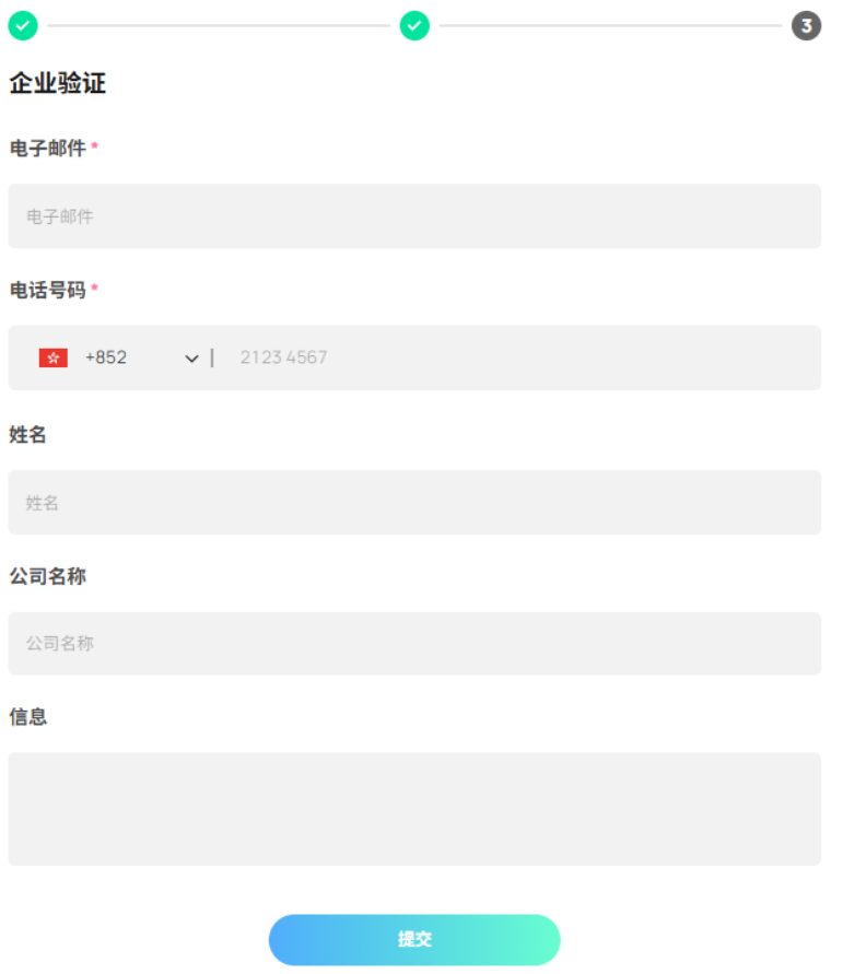 请填写更多详细信息,例如电子邮件地址、电话号码、联系人姓名、公司名称,以及在「讯息」栏中填写您希望我们了解的任何信息。请确保提供的信息正确无误,然后点击「提交」。我们的销售团队将与您联系,以协助完成企业帐户开户流程。